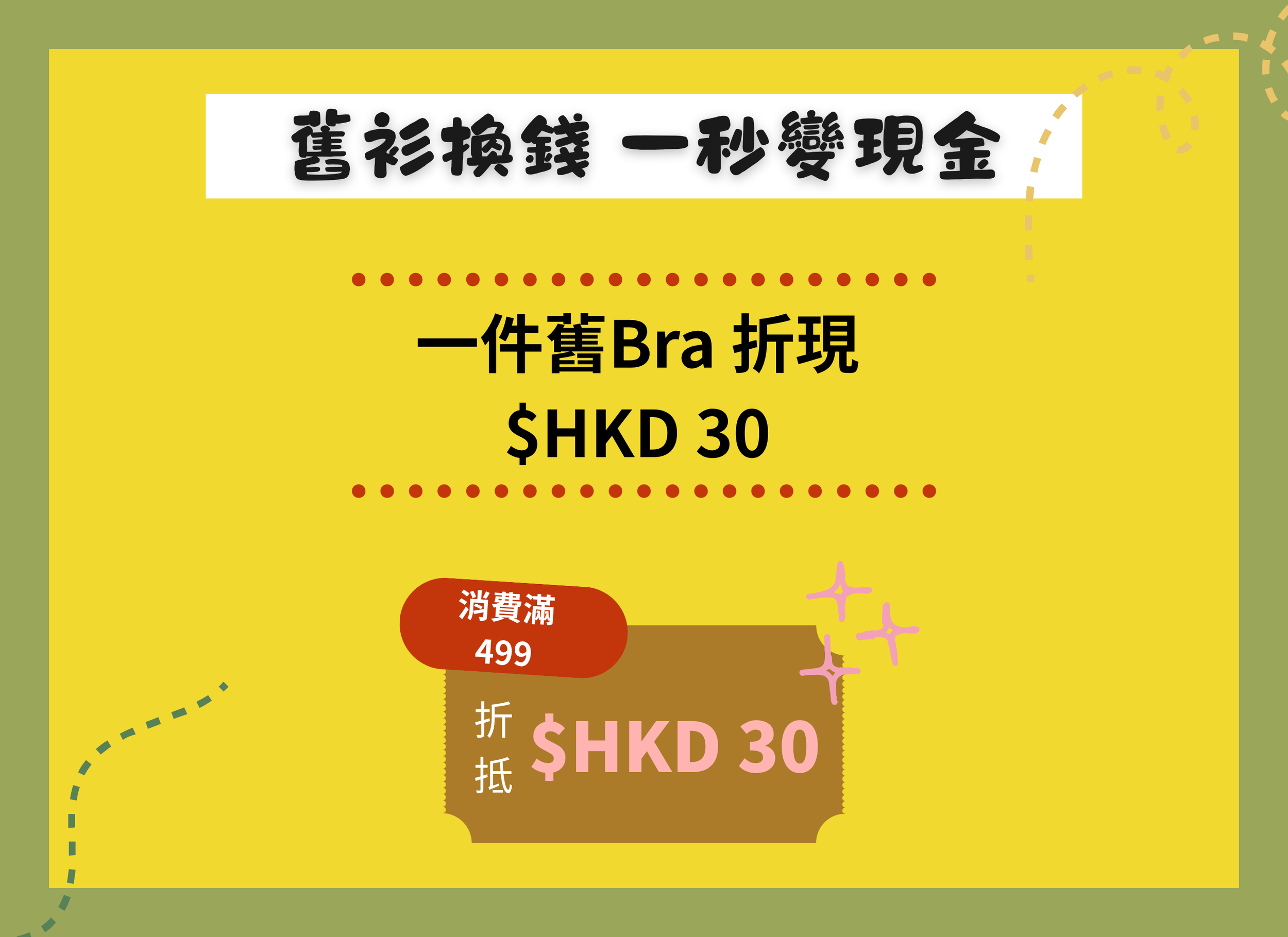 ➡️ 每個舊Bra = $30 折扣